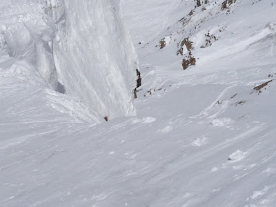The Snorkel Door is open.  For those interested, climb up straight up the Willy's Staircase to Arizona Rock.  Years ago some people thought the shape of Arizona Rock looked like the outline of Arizona.  I think that, organically, its name is being changed to Borgeson or Borgy Rock.  Above Borgy Rock, the staircase veers a bit left.  It tops out at a traverse that leads to the Snorkel Door and into Snorkel Nose.  Some people think this might be the coolest spot in the ski area.  Getting there is not easy.  The skiing in Snorkel Nose today was quite good.
