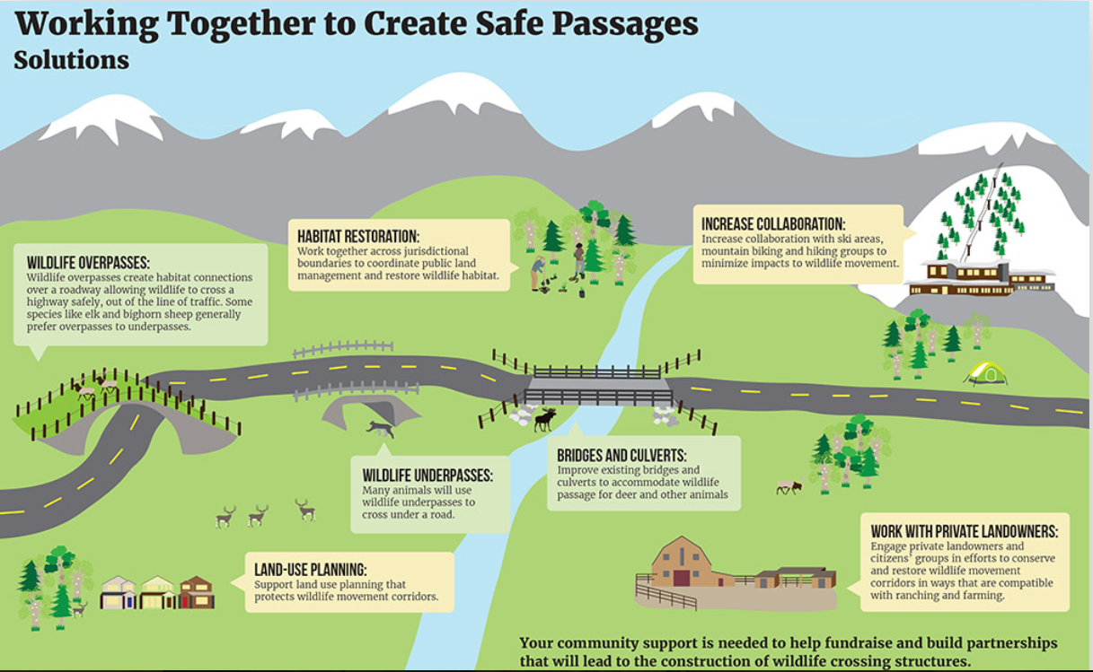 Much like was done to Highway 9 north of Silverthorne, this group is looking for ways, like wildlife underpasses and overpasses, to reduce vehicle/wildlife collisions and improve wildlife habitat and connectivity. Both sides of the I-70 are rich with just about every kind of wildlife (elk, deer, moose, mountain lions, black bears, bighorn sheep, mountain goats, etc.) found in the Colorado mountains.